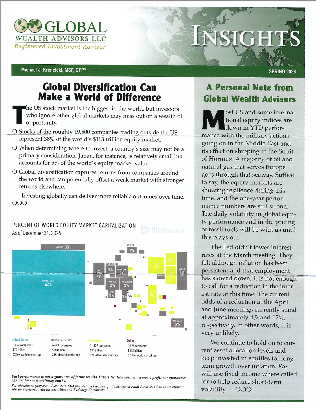 Global Wealth Advisors LLC is a Fiduciary and fee-based Registered Investment Advisor. We are dedicated to helping clients achieve their specific objectives through coordinated wealth management. Our services include Investment Management, Financial Planning, and Tax, Retirement and Estate Planning reviews. All clients of Global Wealth Advisors LLC receive objective, unbiased advice and implementation, customized for their individual needs. If you would like to sit down with us to discuss your specific needs, please contact us for a complimentary, one-hour consultation at (248) 457-4555.